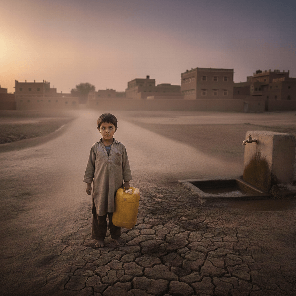 فنتيجة لعقود من الاستنزاف العشوائي والجائر لموارد المياه الجوفية، وسوء الإدارة، واستمرار الحرب والصراع، والتغير المناخي، في بيئة سكانية متنامية بسرعة، وتفتقر لمصادر مياه عذبة كافية، أضحت اليمن تُصنَّف من بين أكثر دول العالم معاناة من الإجهاد المائي الحاد، فطبقًا لتقرير التنمية البشرية لعام 2006م، كان معدل نصيب الفرد اليمني من المياه العذبة المتجددة يبلغ حوالي 198 مترًا مكعبًا سنويًا[2]، وقد أخذ ذلك المعدل في التدهور المتسارع في كل عام، ليصل في نهاية عام 2024م إلى حوالي 82 مترًا مكعبًا[3]، وذلك المعدل يُعد أقل بكثير من حد أو عتبة «الندرة المطلقة للمياه» المهددة للحياة، التي تبلغ 500 متر مكعب للفرد في السنة، بحسب مؤشر فالكنمارك المعترف به دوليًا، وإذا ظل الوضع القائم في قطاع المياه على ما هو عليه من تدهور، فمن المحتمل أن يستمر ذلك المعدل بالغ التدني في التدهور أكثر في كل عام، ليصل إلى حوالي 55 مترًا مكعبًا بحلول عام 2030م[4].